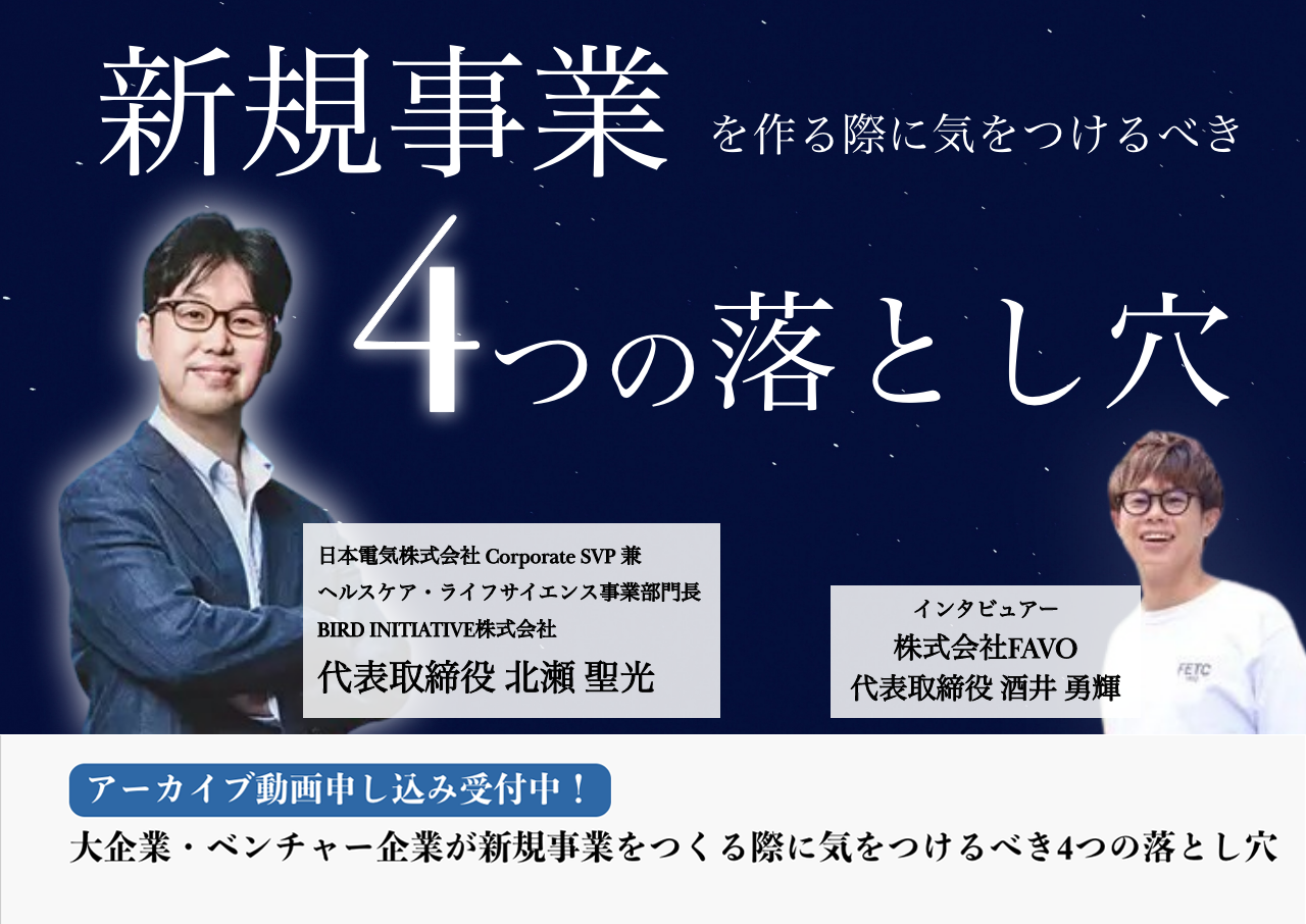 Detailed explanation of the essential points for achieving successful innovation in large corporations, including process construction from vision formulation to business development, how to create evaluation systems, and recruiting members from outside the company.